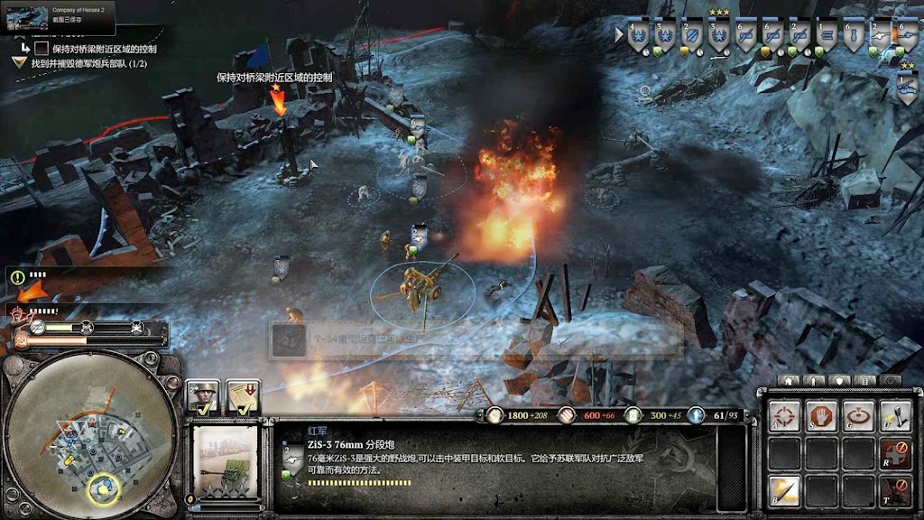 - 蘇軍的T34大軍趕到戰場進行增援,只需要還擊就夠了!記得配備少量步兵去搶佔資源點和機槍.(T34在這一關顯得簡直無情,近戰遠程全占上風)