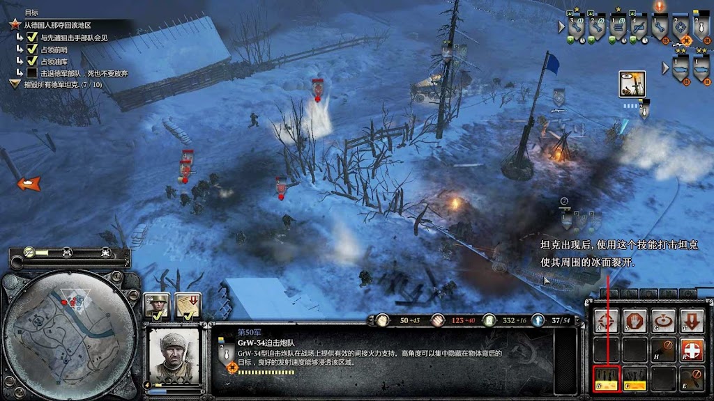 - 當德軍火力過猛的時候,利用指揮官技能的第二個迫擊炮支援.