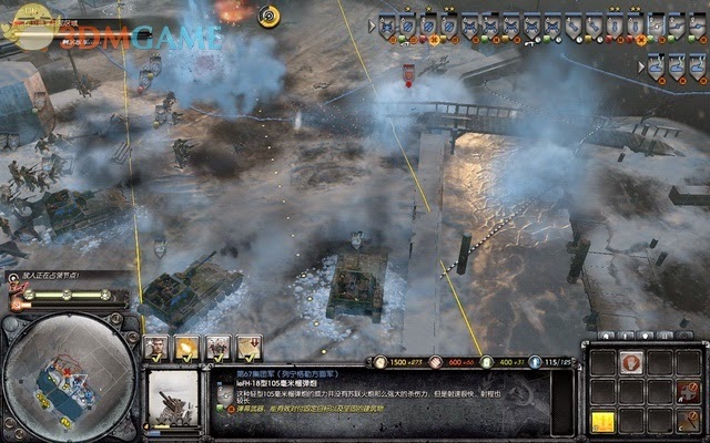 然後上大橋清理橋面的敵人,此間隨時用工兵修理坦克。清理大橋上的德兵,這裏不宜深入,用半履帶車遠程將橋面的德兵打掃乾淨,會觸發劇情,發現大橋上有炸藥,果斷撤退。爆炸之後,發現大橋並沒有斷。
