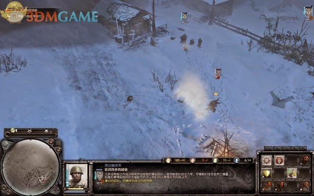 目標3:偵察出通往德軍前哨站的路徑 和狙擊手會合後繼續往西南走,與一組工兵會合,解鎖支線任務“摧毀德軍坦克(10)”。在附近找到坦克(1/10),炸毀它。派工兵和步兵進屋子裏回復體溫,狙擊手拾取附近的兩隻彈藥箱。