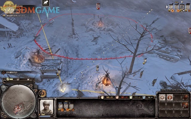目標8:阻擊德軍的進攻 佔領河北岸的哨站後,迅速派士兵過去佔據迫擊炮,其餘的兵力找掩體埋伏,隨後大批的德軍來襲,阻擊他們,重點是觀察冰河,出現坦克(10/10)的時候用迫擊炮轟沉它,德軍隨之作鳥獸散。