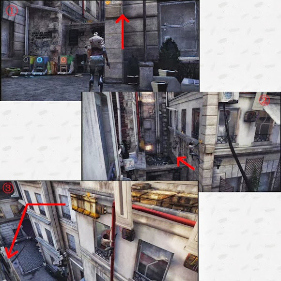 直升飛機一直追在後面的緊迫感確實很討厭;一共要與他糾纏4幕。第一次很方便,只要跳過3段障礙即可。第二次的路線選擇靠牆內部的,並且不要走的太快,地面的防護欄一定會被飛機射穿然後掉下去;第三次在防禦工事內部的時候,這時候沒有了時間上的限制,可以適當減慢速度,因為崔斯的直升機會把牆面的百葉窗直接打爛,如果這時候人在窗戶上也會被秒殺。