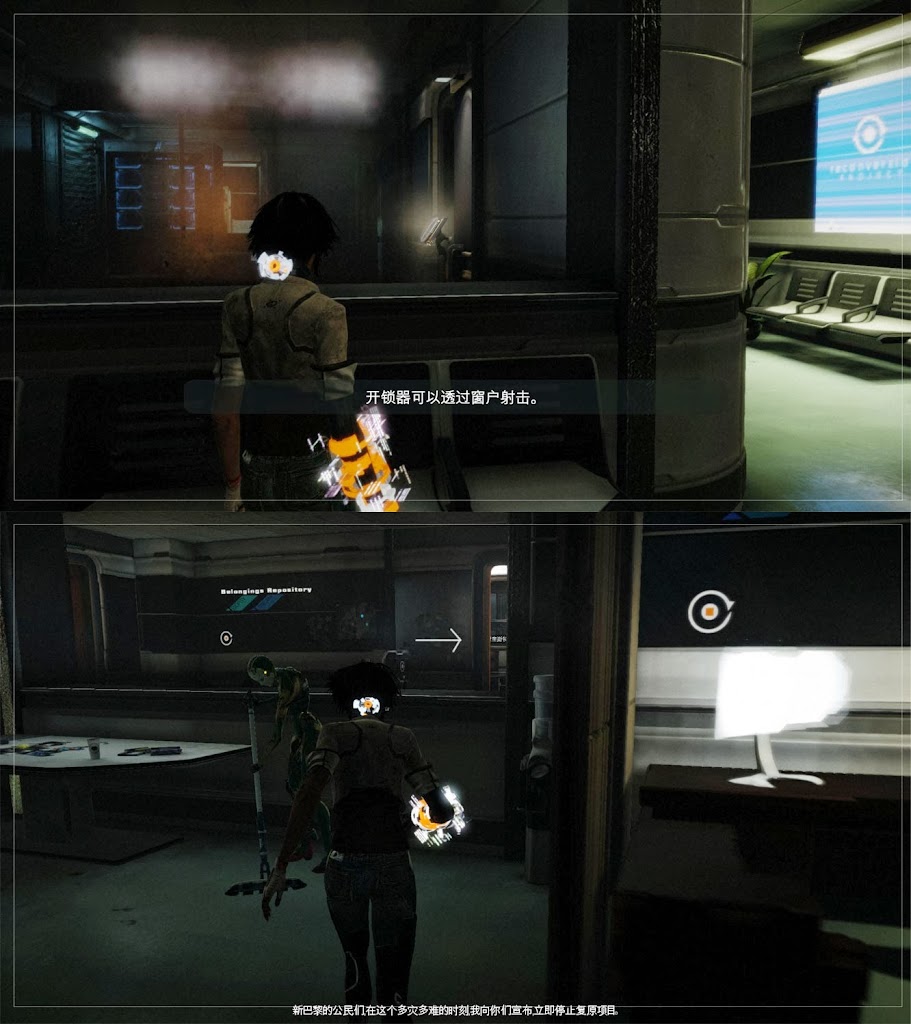 4.進入消防室,抽取消防室大門的能量,在其門未完全落下的時候出來;得到的能量用於啟動前往【和諧商城】的電梯。