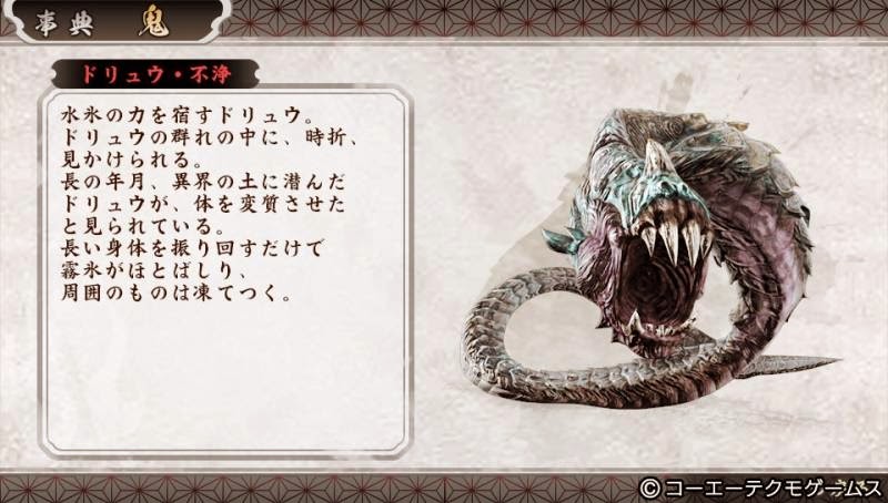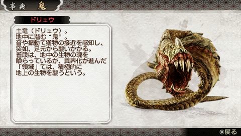 | ドリュウ・不浄 | | 不浄の皮 伸縮體 溶魂液 謎の牙 蒼玉 謎の大爪 |