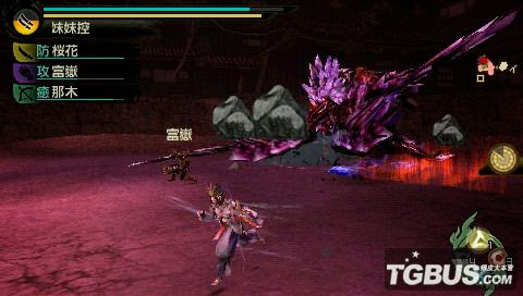 這只龜是我目前最討厭的boss。通常狀態下還比較好對付,主要注意體積很大的兩隻前爪。比如說圖中的這種滑行攻擊,不要以為跑到他側面就安全了,它停車之前還要把前爪向兩邊張開來增加攻擊範圍,所以要盡可能躲遠點,而且這個滑行還會有二連擊,小心不要被回頭再沖過來得boss打中。另外boss的前爪甩擊和側壓攻擊都對站在側面的人造成威脅,建議優先攻擊後腳。破雙腳後boss每次滑行必定倒地,可惜倒地時間不長,要抓准它的位置來保證輸出。