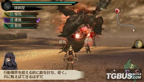 如果需要部位破壞的話他的手有時候會垂下,一直在側面攻擊它的話還是比較容易破手的。由於BOSS的頭部較高,一般垂下頭的時間不長,所以想要破頭必須捉准它倒地的機會。破腳的時候會長時間倒地,另外它會有一招跳起砸下來的攻擊,如果已經破雙腳,那麼落地後會短時間倒下。趁著這機會用鬼千切(△+O)來攻擊頭部可以比較輕易達成部位全破。