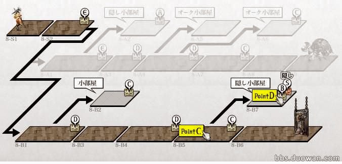 A路線中的小房間裏有休息中的獸人,不攻擊的話就可以避免戰鬥。