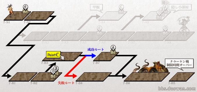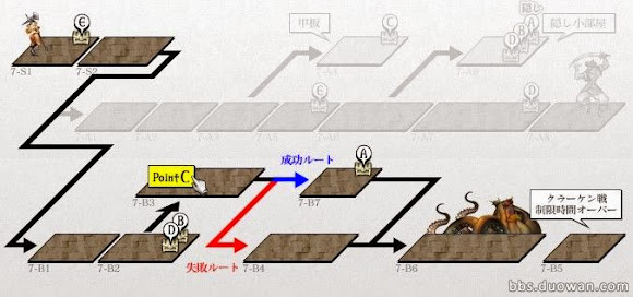 A路線中小屋子比較分散,被抓住的姑娘一共有三個,第三個被抓的姑娘在POINT B的隱藏寶箱裏,發動符文魔法(THF)就可以看到了。