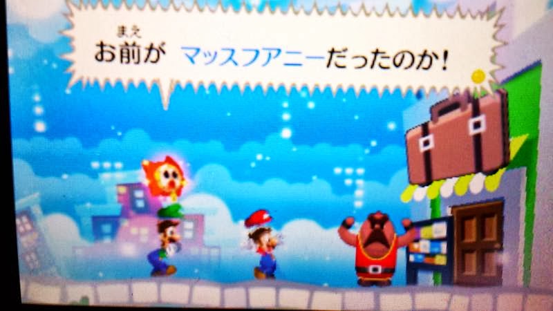 1.戰鬥過後又來到了夢世界,一路右行看見一個指示牌,調查後顯示了該場景的全貌,需要按R鍵將路易吉變到畫面內部,觸摸下屏拉動鬍鬚改變水管方向,走到上方出口處觸發新劇情。