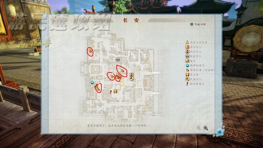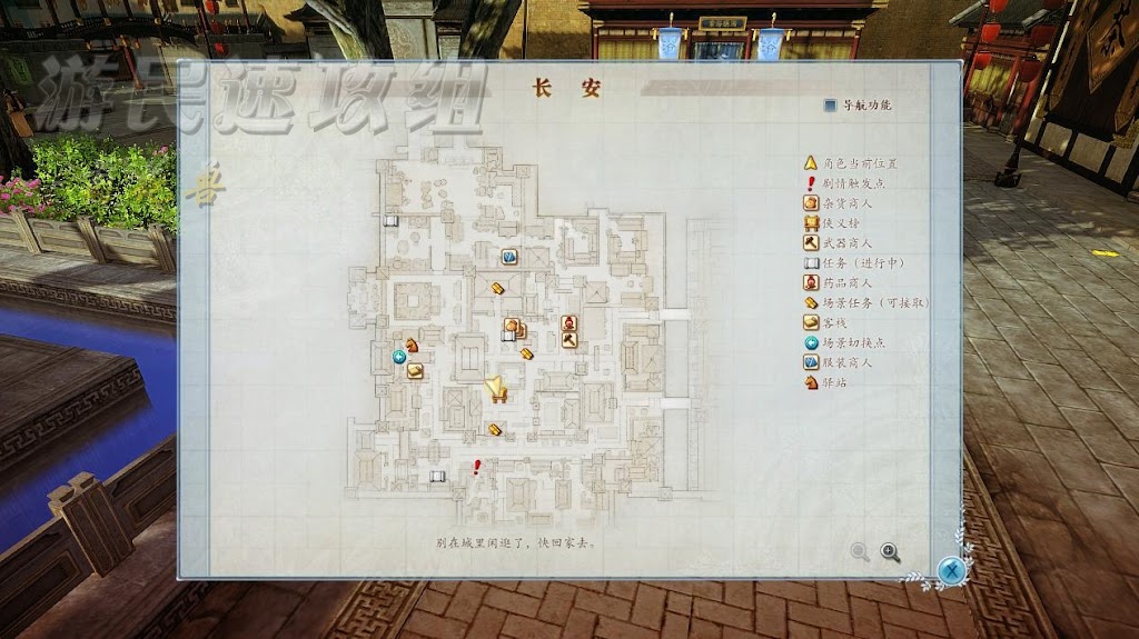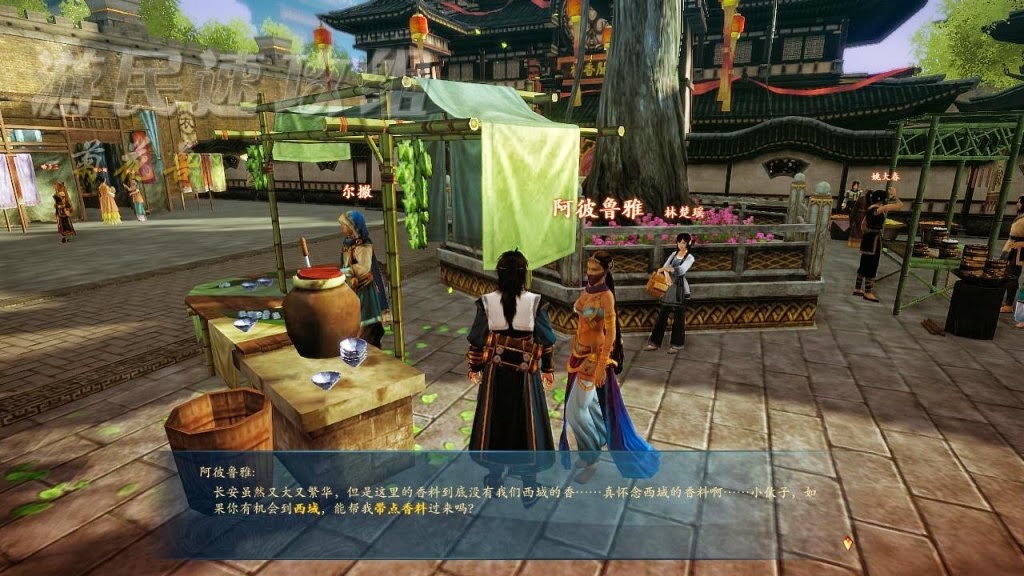 找阿彼魯雅,還是要到西域才能完成的任務,不用管,最後就是右邊那個了,借用一下這幅圖,背景最後面那個最大的建築就是聞香閣,下一個任務就是要在這裏完成。去任務目標那個建築立面找風小舞,在最右邊,然後去聞香閣找風小魂,比較不顯眼的傢伙,截個圖看看。
