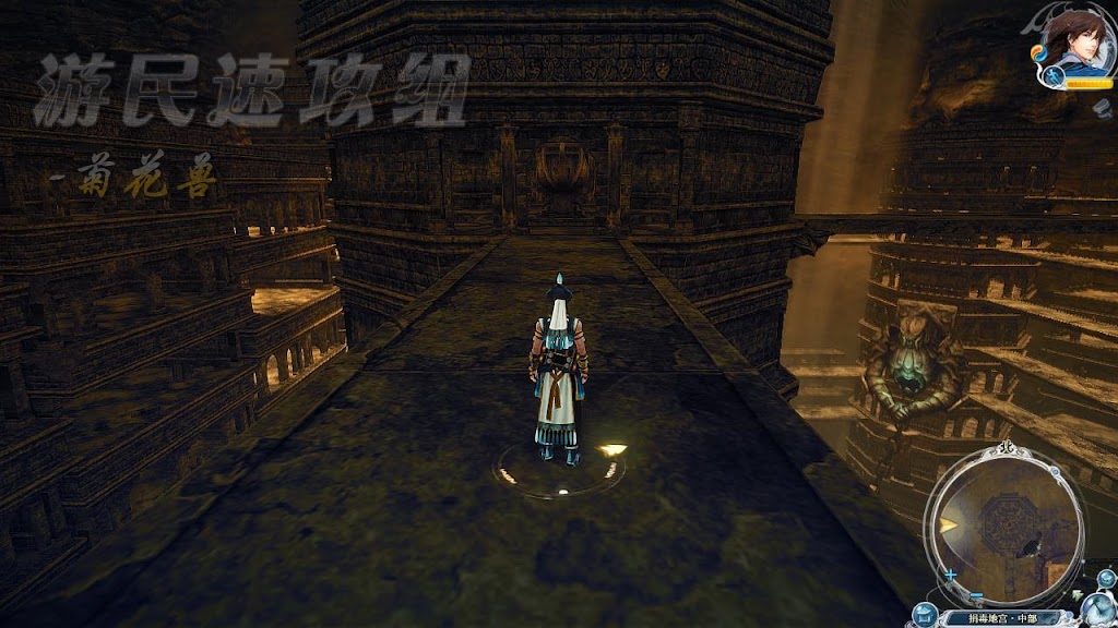 此處謎題,劇情中已經說了,找到跟中間雕像一樣動作的雕像,然後空格即可。一定不能錯,錯了重來,要把所有雕像都點亮。接下來要做的僅僅只是跑地圖了。