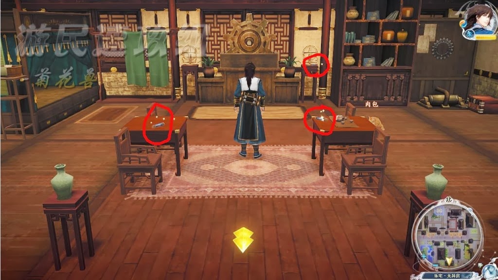 這個房子裏只有一個地方有一個箱子,那就是地圖上我所在的位置,之前的那個有個美女偃甲的地方。之後去找他們喝酒,劇情很長,礪罌登場了,應該是最終boss……跟邪劍仙似的……