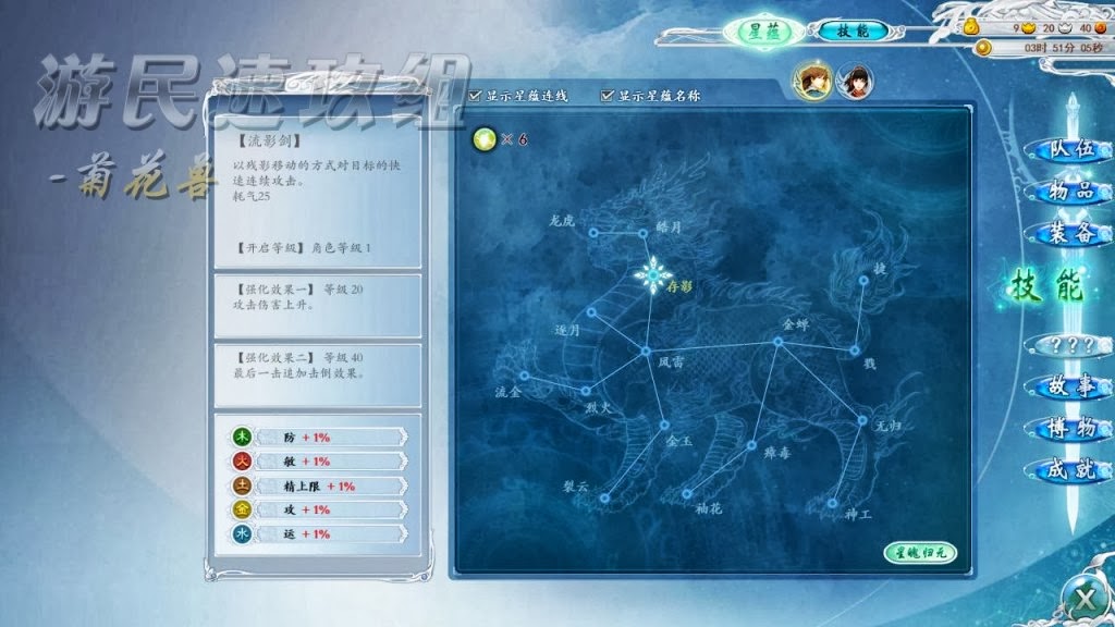 一共有6點星魄,聞人羽身上本身點了3點,建議眾主角均衡發展,所以,看下圖吧。建議看大圖不然比較難以看清楚其屬性。本作不像前作,要提一下,沒有歸星沙這個東西,星魄歸元想怎麼用怎麼用,以後不滿意可以重新點。
