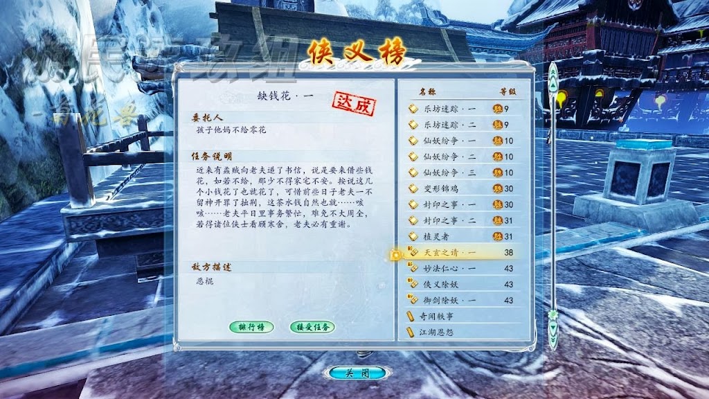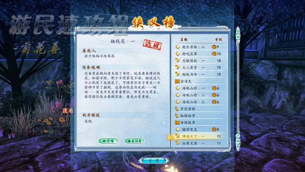 劇情結束之後,到達太華山,之前的那個支線也可以告一段落了,這裡有一個新的支線,以及俠義榜。這個支線又是鹿子要吃桂花糕……不多說了。