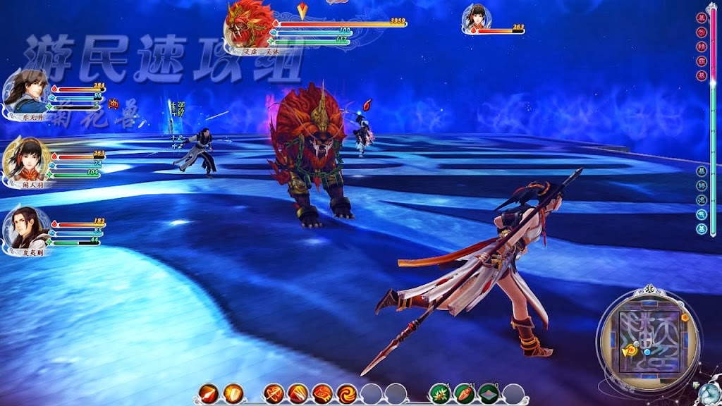 血契靈獸•八:這一關呢,比上一關稍強,但也不算太強,夏夷則負責後方遠端輸出,阿阮負責恢復,其他兩人沖進去,儘量把敵人聚攏在一團,為了完成這些你必須時刻切換角色。
