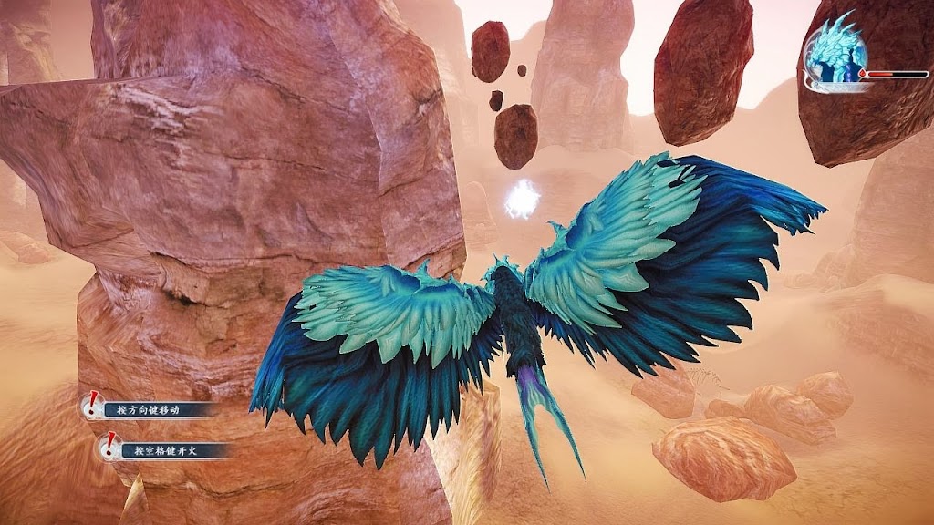關卡的最後是飛行小遊戲,WASD操作鯤鵬閃避石頭,小石頭可以用空白鍵擊碎,大石頭只能靠躲避了。有了鯤鵬“饞雞”的幫助,只用一天時間便到達了長城,下一步就是尋找捐毒的城市。