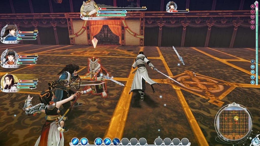 所以,最好的方法就是在場三個角色,靈體的寵物基本是擺設,不參加戰鬥(似乎被場景卡住了);然後利用遠端技能進行消耗,“流光劍”射程最遠,優先考慮;如果要追求速度,可以讓【聞人羽】全力進攻,然後【夏夷則】或者【樂無異】選擇一個補給為主,另外一個遠端攻擊與消耗,不過第二種打法需要的藥品更多;