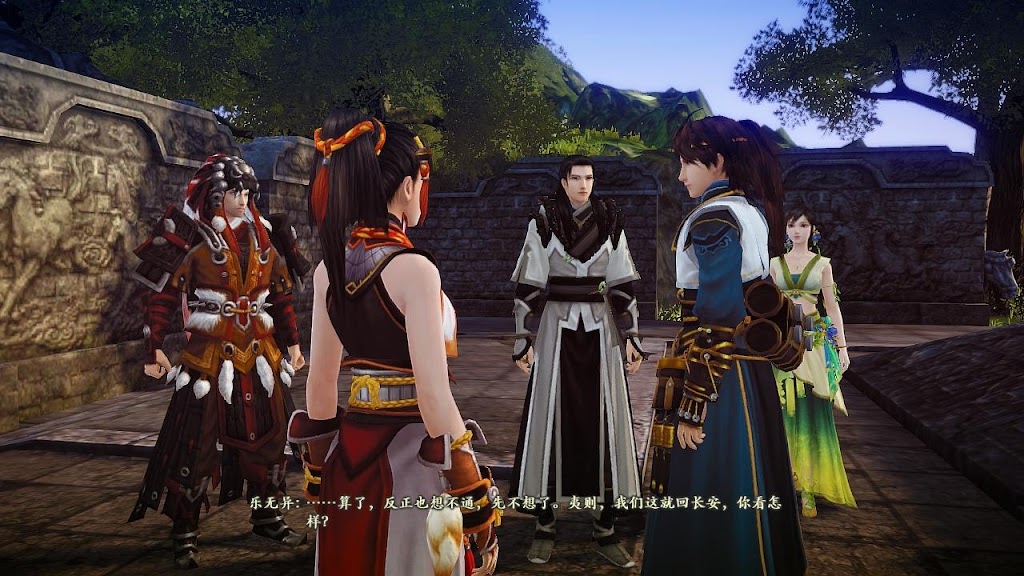 花園被弄的一團糟,被父親和客人撞見,非常現代地教訓了樂無異一頓(古劍這部古裝劇融入了非常多的現代元素),向樂無異提到魔劍晗光與他家族的淵源。交待完一切劇情提示後,仿佛全家人夢魘的母親歸來,知道她一定會為了花園的事惡狠狠地教訓樂無異一頓,愛子心切,樂無異在父親和僕人的幫助下暫時逃過一劫。在母親氣消之前,只能在長安閒逛了。