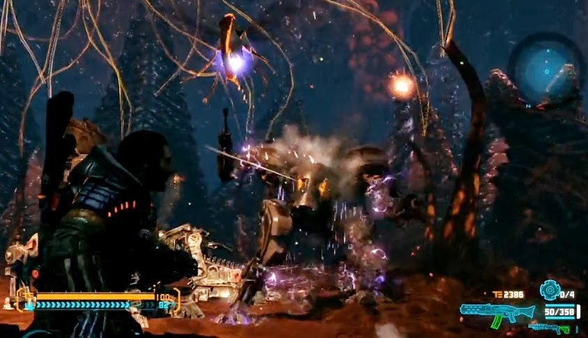 8.將敵人全部擊殺後,撿取附近的補給箱,然後根據任務標識前進,進入迪亞茲洞穴。洞內出現的生物有如地雷的一樣的卵,靠近即會爆炸。還有章魚,以及無限噴吐章魚的章魚卵。按RB鍵扔出手雷在章魚卵開口的時間,即可將其消滅。之後對著T-ENERGY能源長按B鍵即可