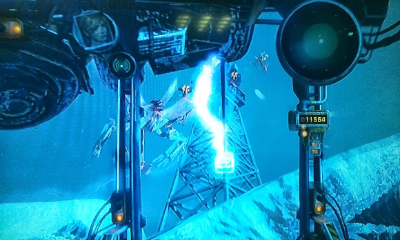 7.控制機器人根據任務提示一直往前走,直到行走至樓梯處,按B鍵即可從機器人中出來,之後下樓梯與防守此處的隊友回合。劇情後會出現兩隻冰甲蟲和少數章魚。冰甲蟲的弱點是在尾部,所以攻擊其身體沒什麼效果。等待冰甲蟲衝擊過來時按A鍵向旁邊躲開,然後對準尾部紅色處射擊,射擊5下即可將其擊敗。