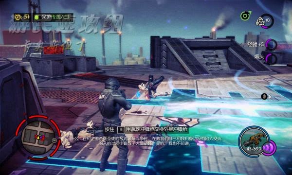 看來我們的計畫被辛星人提前發現了,計畫什麼的先放在一邊,首要任務是活下來,我們先在這裡抵擋一下辛星人的攻擊,小心,辛星人裝備了一種可以抑制我們能力的手榴彈(我想起了《紅色警戒3:起義》),出去的時候,外面有一堆坦克,還會時不時遇到蜘蛛機器人(攻擊它的背後來摧毀它),至於坦克,火箭筒拿下,然後隨便摸上一輛坦克掩護聖徒們,然後去到屋頂去搭乘直升飛機