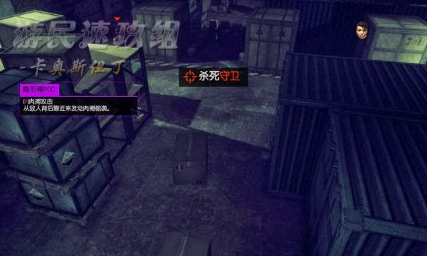 到了上圖二的位置,就是簡單的不能再簡單了,總之一點,不要在敵人面前移動就行了,而且暗殺範圍很大,稍微靠近敵人一點就可以用F鍵暗殺了,沒有任何難度……