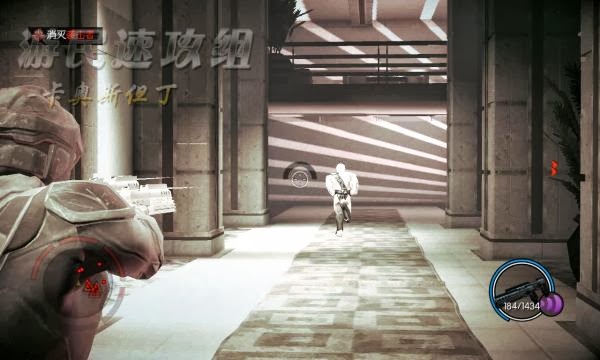 看來蓋特已經逃出來了,而且殺了不少人,而且還被護盾鎖閉起來了,為了關閉護盾,我們就要吸引辛星人的注意力,怎麼吸引,很簡單,屠殺,屠殺到一定數量後,護盾關閉,然後我們就繼續往下走,接下來……我們見到了一個熟悉的身影……沒錯!是殺人機器強尼蓋特!(任務完成)