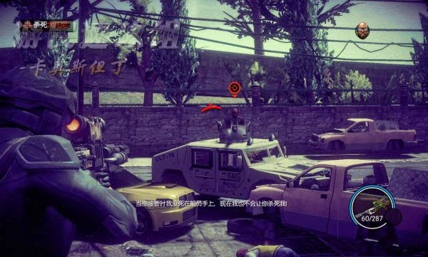 然後去泳池邊去拿火箭筒,等等……What the hell was that?!算了,不管了,用火箭筒轟他,彈藥不夠的話就去泳池的另一邊去補給(注意他拳頭打下來的地方注意躲閃,我是說,迅速躲閃,因為我們用不了超能力)