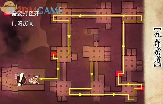 來到鎬京收集巨鼎的線索,居民們反映城西南的廢屋裏經常傳出敲打銅器的聲音。三人進到廢屋找到機關,進到一條地下通道。裏面是一座機關繁複的迷宮,開始是一副亂掉的八卦圖。將它排成先天八卦:乾南,坤北,離東,坎西,兌東南,震東北,巽西南,艮西北。
