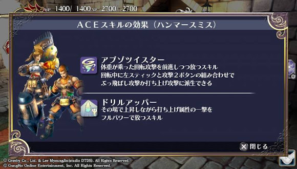 本作改動最大的地方應該就是加入了全新的戰鬥系統~也就是ACE SKILL,所謂的王牌技能會因為職業的不同而不同,玩家可以根據自己的需要來改變自己人物所攜帶的王牌技能,使用王牌技能時按下對應的L+三角、圓圈和叉鍵即可(正式版是否會加入L+方塊鍵的王牌技能還未知),玩家也可以通過直接點擊右上方的技能來發動王牌技能。