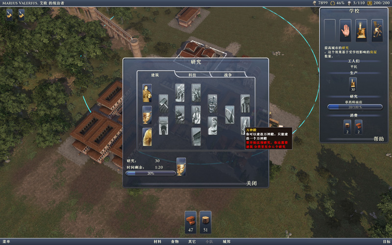 研究建築從而能建造三大神廟可以很快的提升宗教滿意度。