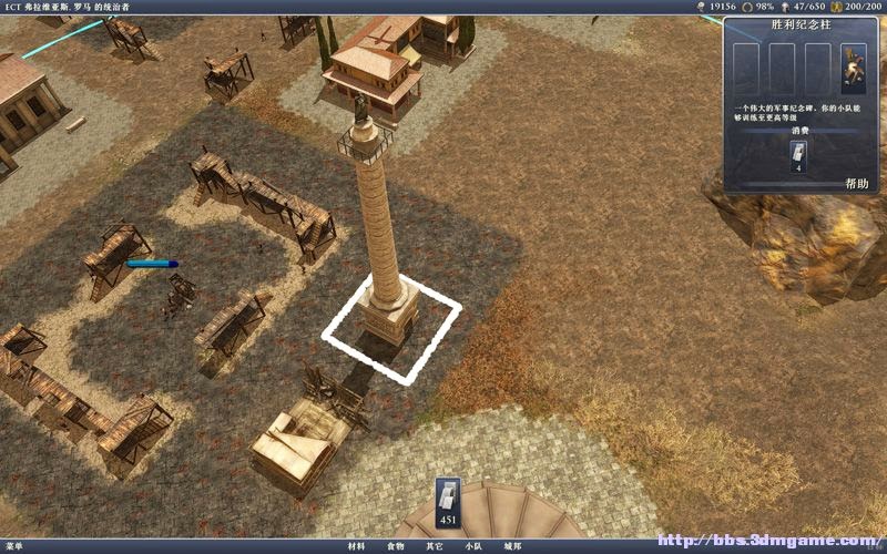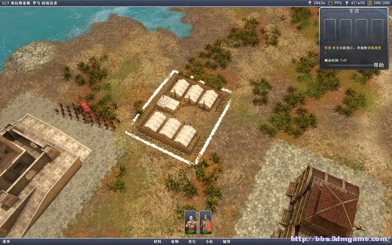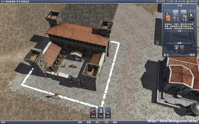 建造勝利紀念碑等提升訓練等級的建築,一邊訓練一邊打退幾次蠻族的入侵。箭頭為野蠻人進攻路徑。