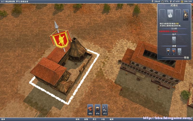 《大時代:羅馬》共有三種基礎的生產資源:木材、石頭和磚頭。