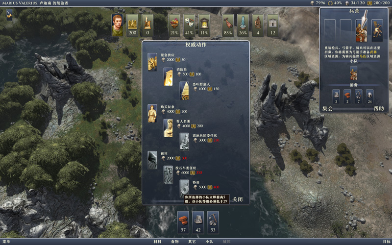 你可以通過螢幕頂部的權威選項使用權威點數來發動其功能,它可以給你提供不同的經濟軍事作用。
