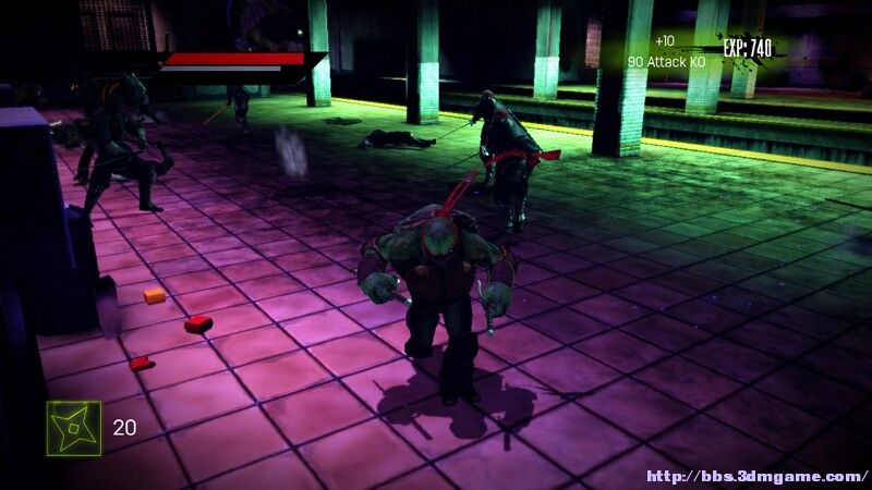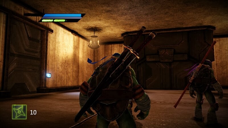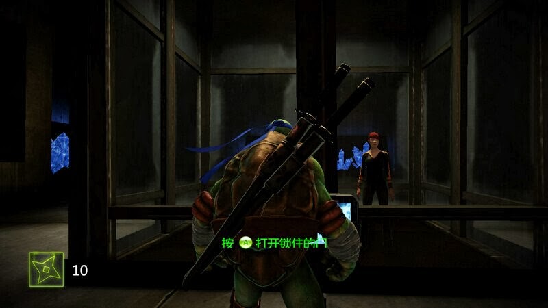 外星人不管你是誰的見人就開槍打,槍械沒法反擊掉,只能近身砍。破解大門,把綠色和綠色。黃色和黃色了連結起來就可以經過戰鬥後來到地鐵道全清理敵人後跳上列車,遇到Shredder手下Karia。