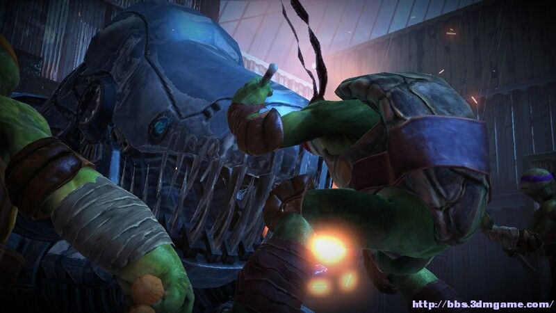 周圍有3披薩餅+手裡劍的補給,這次要破掉BOSS剩餘2頭,但是場地會議只有4老鼠+2機器人無限刷干擾你,死掉就要從第一場開始打,多用手裡劍牽制敵人,BOSS的壓殺也能打死自己的小兵,這不是最操蛋的地方,BOSS核心全破後砍頭的時候一定要注意周圍,如果你打頭過程被小兵打斷了導致DPS不夠就要再破一次4核心,長久下去你的隊友死光了你也就沒得玩了,所以最後核心要把BOSS引到離小兵遠的地方在幹,即便這樣坑爹的視角+小兵穿模型的神走位元依然讓人無限蛋碎,特別說下胸口核心,等BOSS用鐳射在打,不然被K了很痛