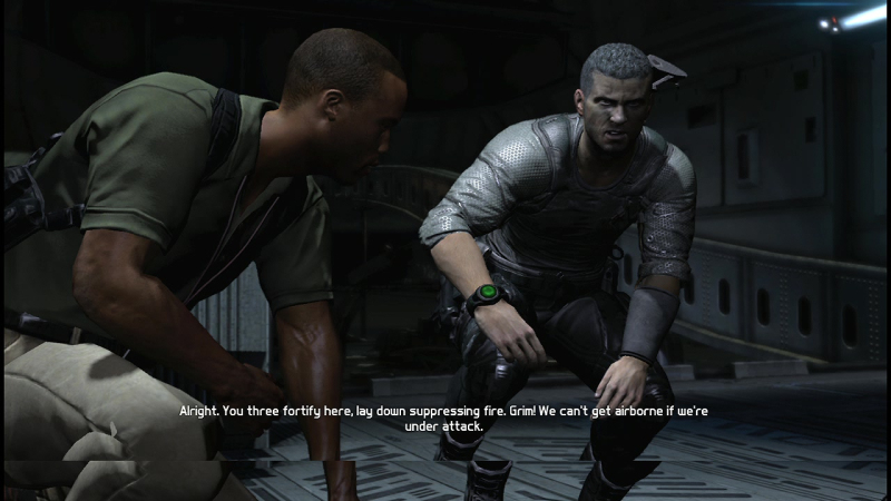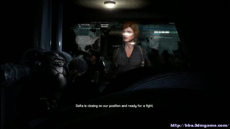 此時門口會進來多名敵人(其中一人身穿鋼盔)他們會有一人走進來檢查,利用在場的伺服器作為掩體繞過他後,其餘敵人都會紛紛走到二層樓道搜索,因此快速穿過intel中心側門並打破前方的落地玻璃離開。