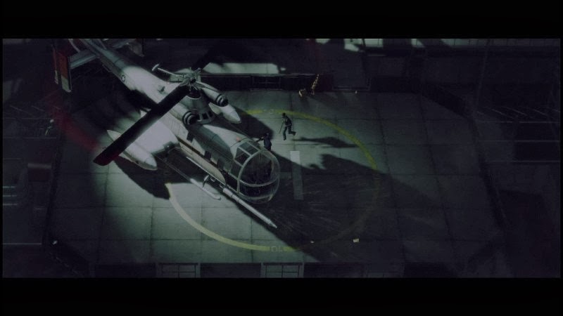 依靠著直升飛機的機尾作為掩體,用手槍擊退MP辦公室前的7只銀色身材矮小的外星人,然後進入辦公室內。