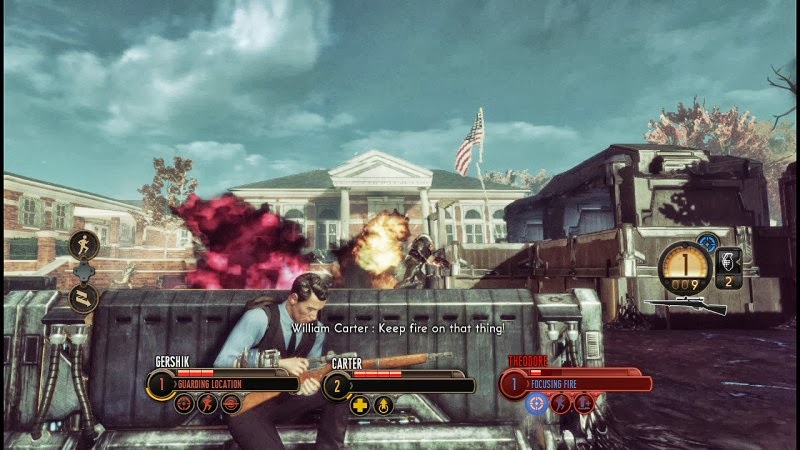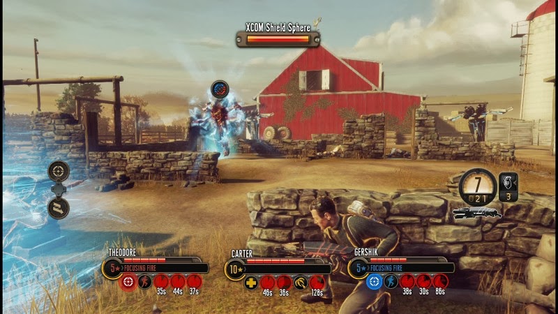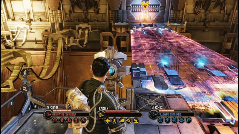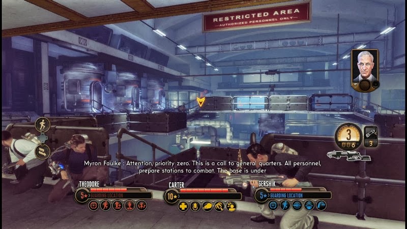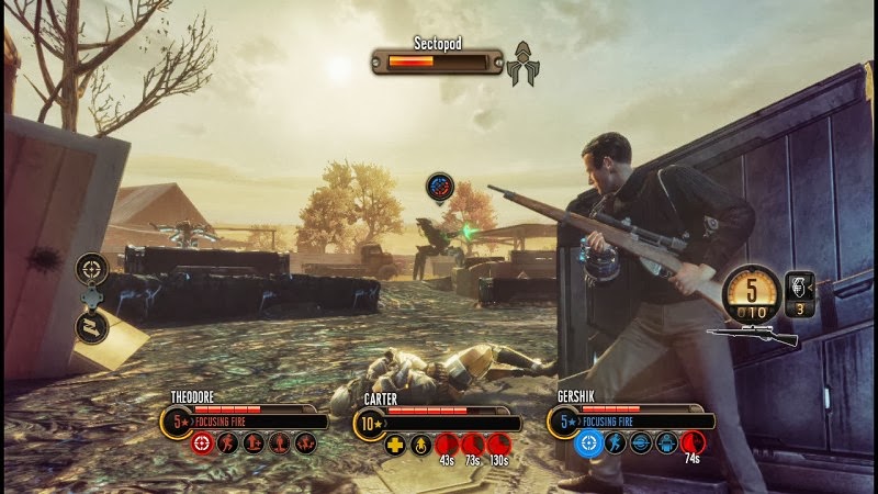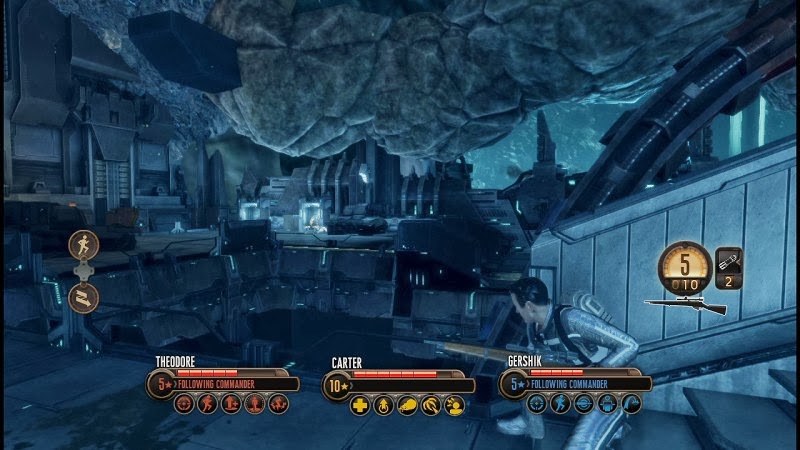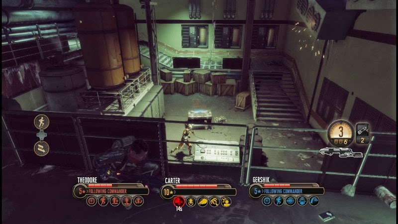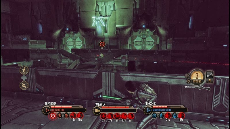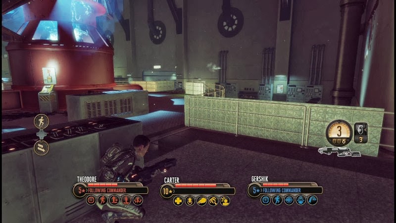 最終在閘門後會出現一台sectopod,一開始它不會主動走進來,那麼兩名隊友就能夠佔據地理優勢收拾它,而卡爾特也就可以遠距離狙擊它。