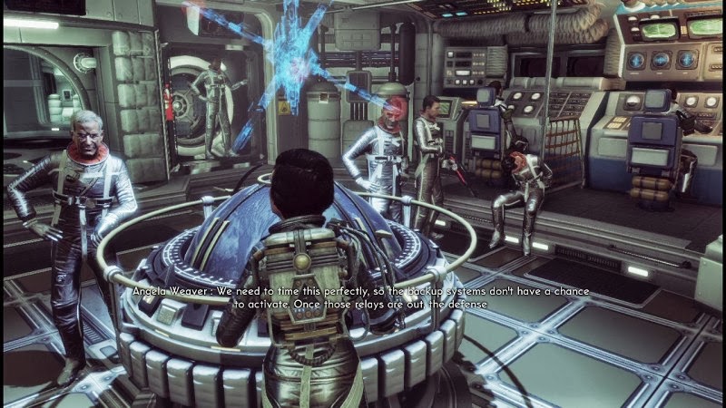 step1.(摩西亞克就處於地球大氣層以外的位置)薇芙協同其餘四人(另外兩人是威爾和仸克)一起搭乘一座移動板前進。從右側外出的摩西亞克基地的戶外,沿著樓梯進入到一嗰有空氣呼吸的房間後會見到威爾、仸克已在前方等候。