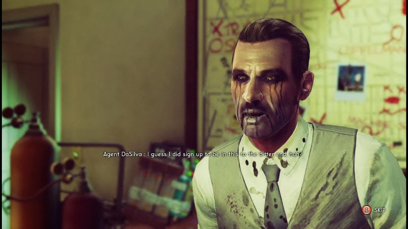 對話完畢後,滲透者會跳到下層,然後擊穿一間實驗室的玻璃門,三人同樣穿過被擊碎的玻璃窗繼續追擊。