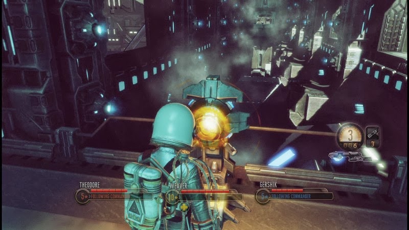 step6.來到sectopod生產基地的下層會看見躲在角落的威爾博士,此時最好就做好回頭的準備,因為一旦走到中部就會彈出一隻sectopod,而且浮球會把隊友都弄到空中,到時候薇芙就會被孤立。