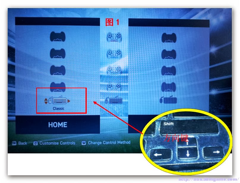 第一步:大家來到這個介面(圖1),使用方向鍵,按上下將操作模式改為只鍵盤(就是鍵盤旁邊沒有滑鼠,如圖2)。