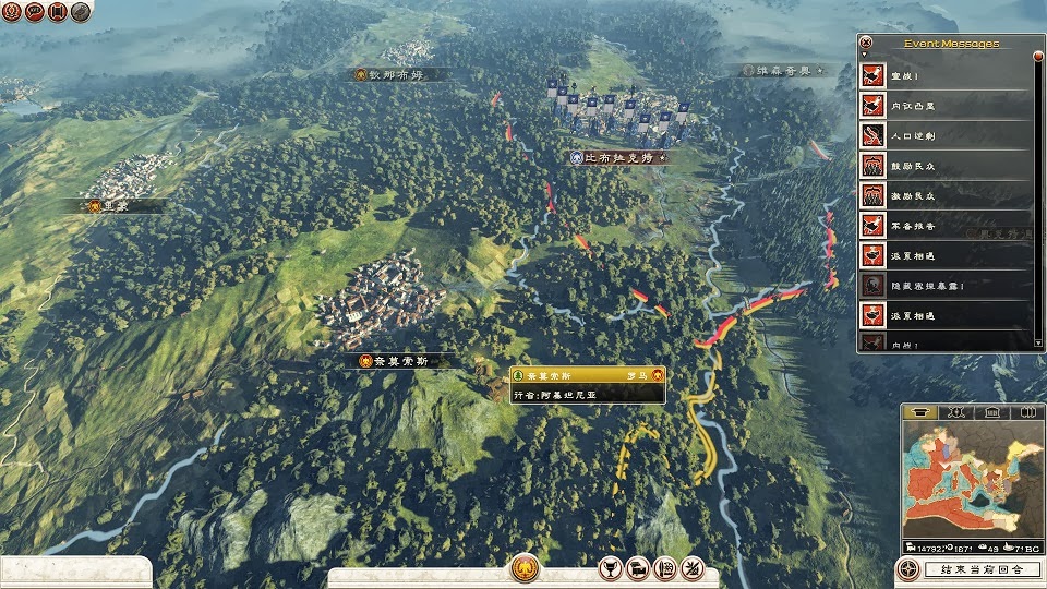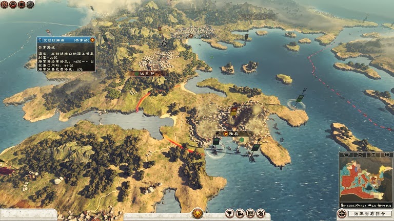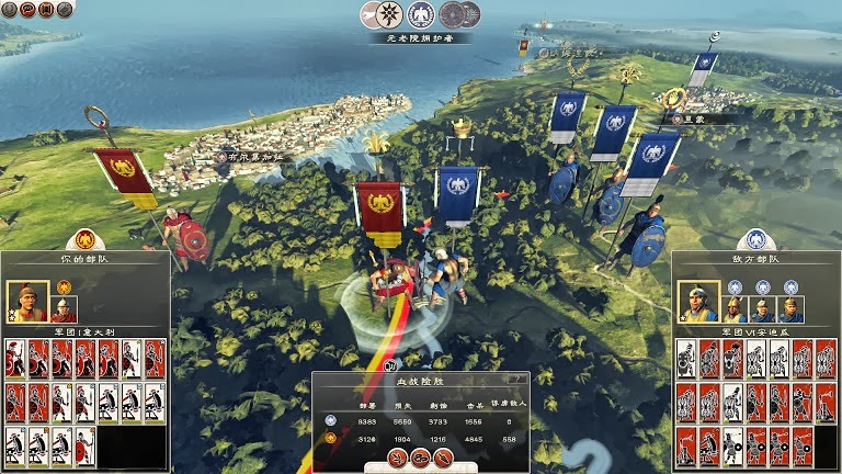 我玩的難度是VH,一開始很好打,羅馬軍隊對那些布衣滿族隨便搞搞,但是聲望到了後,內戰爆發。。9個滿編,都是高級兵種,自帶投石車。我發現叛軍都是刷在你兵力空虛的省,所以我就利用了這點,讓他刷在了內陸,這樣他就沒有海軍啦,前幾次,刷出來8堆海軍,我沿海城市全部淪陷,擋都黨不住啊。