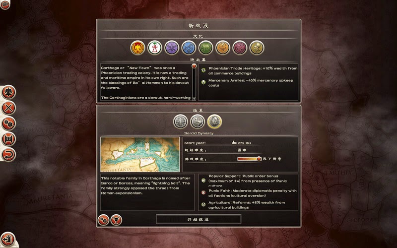 迦太基戰役也是一個較難開局的指引,為接下來的困難模式帕提亞戰役作鋪墊。