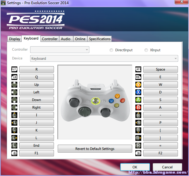 實況的鍵位設置是儲存在:文檔\KONAMI\Pro Evolution Soccer 2014\settings.dat ,不過是二進位元儲存,需要像winhex之類的二進位編輯器。