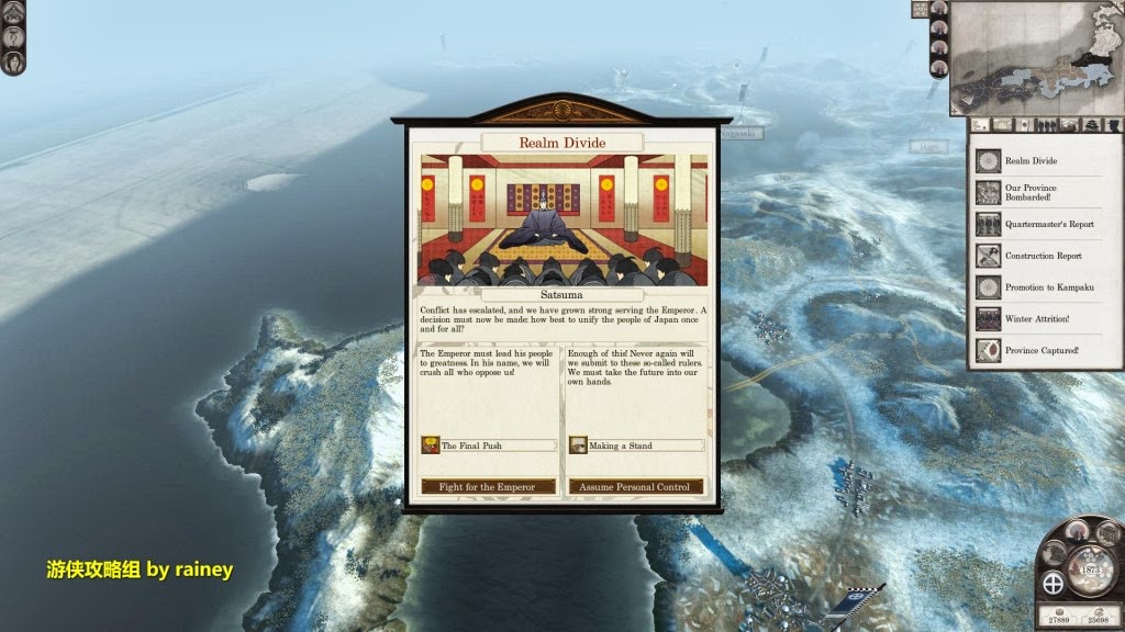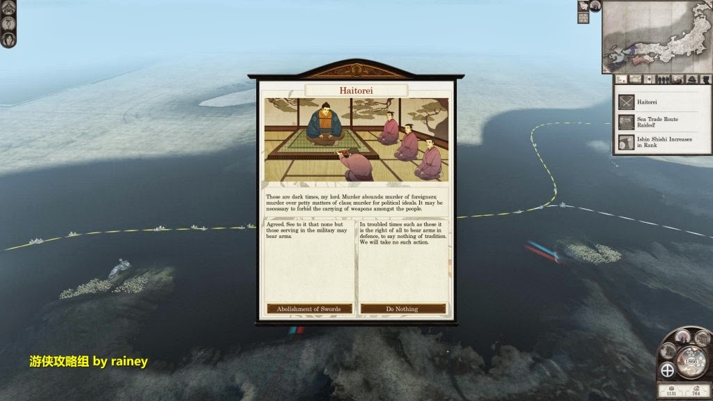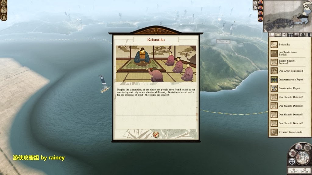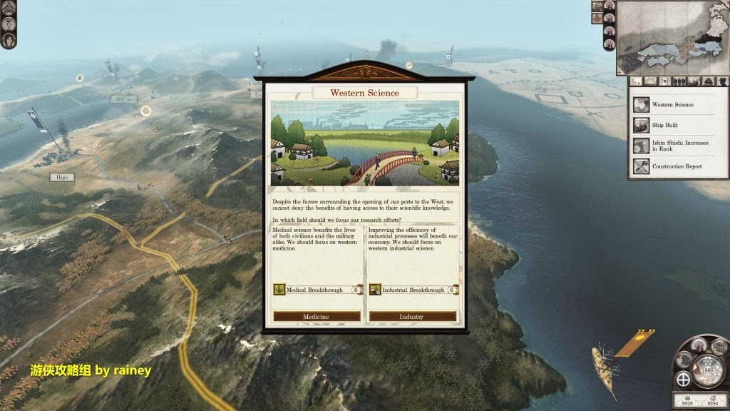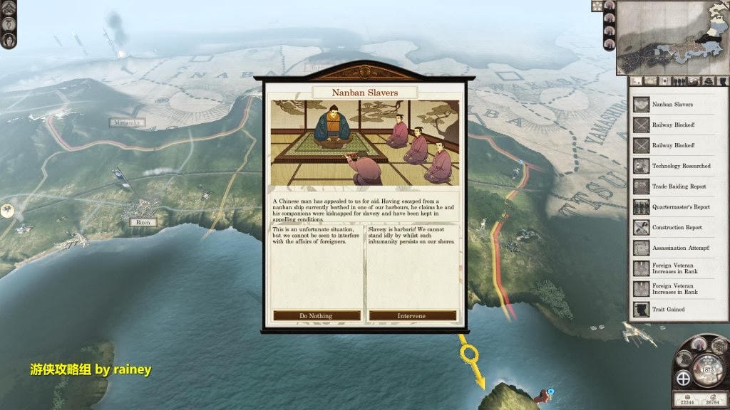 隨著火車在本州的出現,日本的工業又迎來了新的篇章。這時,無論用外交還是軍事手段壓制九州的殘餘勢力,這就看你的喜好了。筆者肯定是滅掉一切可能產生威脅的對手,包括盟友,再圖謀四國和本州。