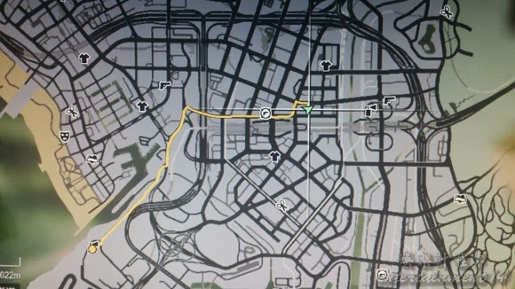 劇情梗概:劫案前的準備工作,雇傭的駭客已經發來電子郵件,三輛車和停放的位置都在郵件裡。F要去獲得他們要點攻略:第一輛車:在圓帽山的停車場頂部,如圖位置。把車開出來送到LS改車王,改車時選擇修改[黃金準備工作]這個選項需要11000美金,最後把車開到車庫。