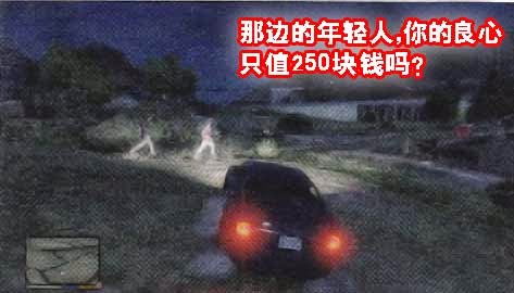 在Vinewood盤山公路,偶爾會遇到幾個鄉村非主流,開著手扶摩托車攔路下你的車,會根據你控制的角色不同發表不同的種族歧視言論,讓他們活著把話說完會非常有趣!
