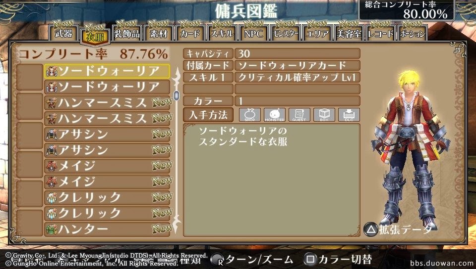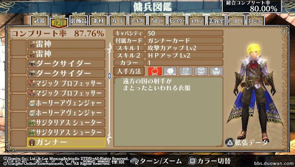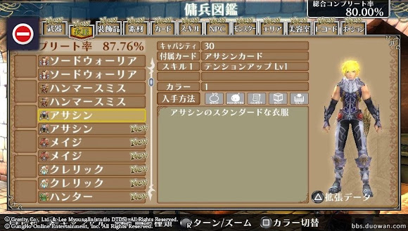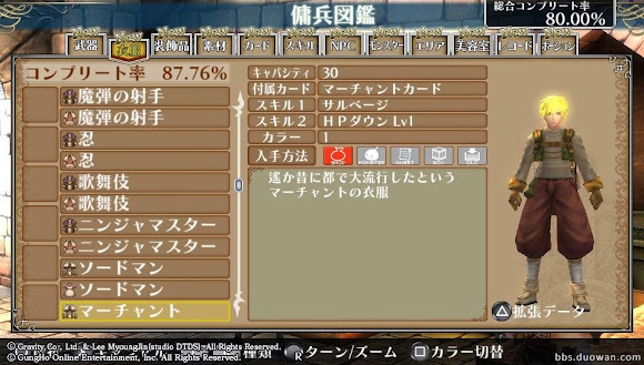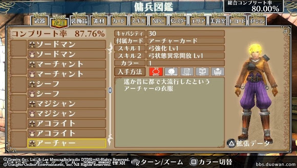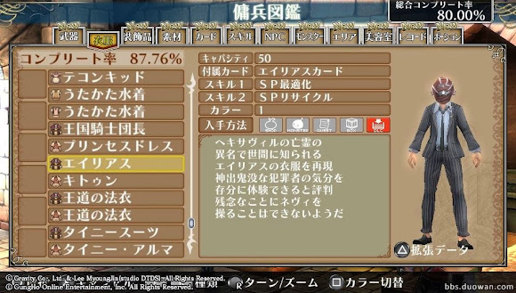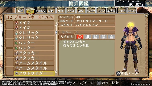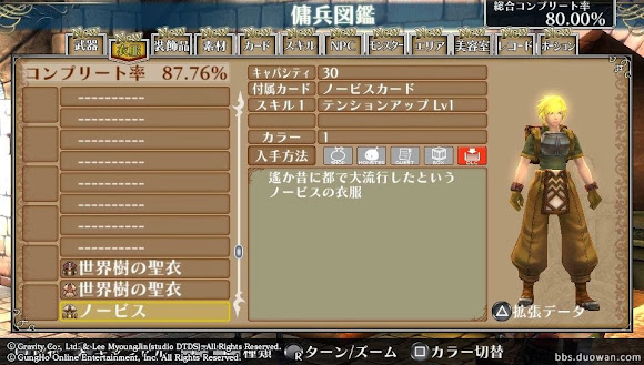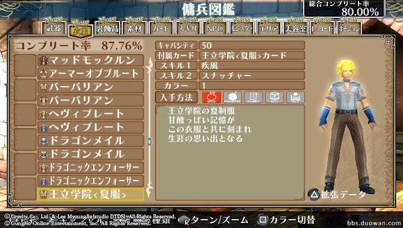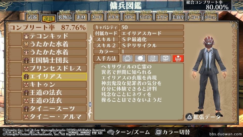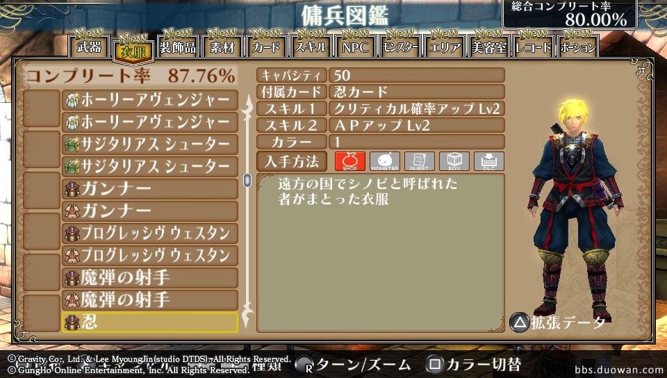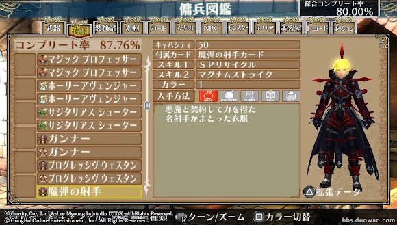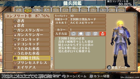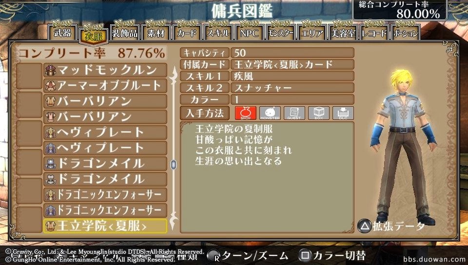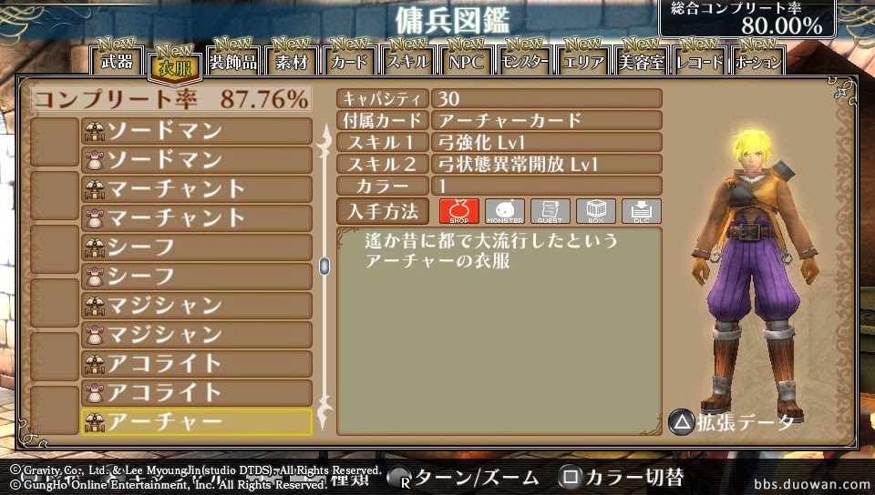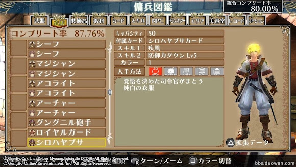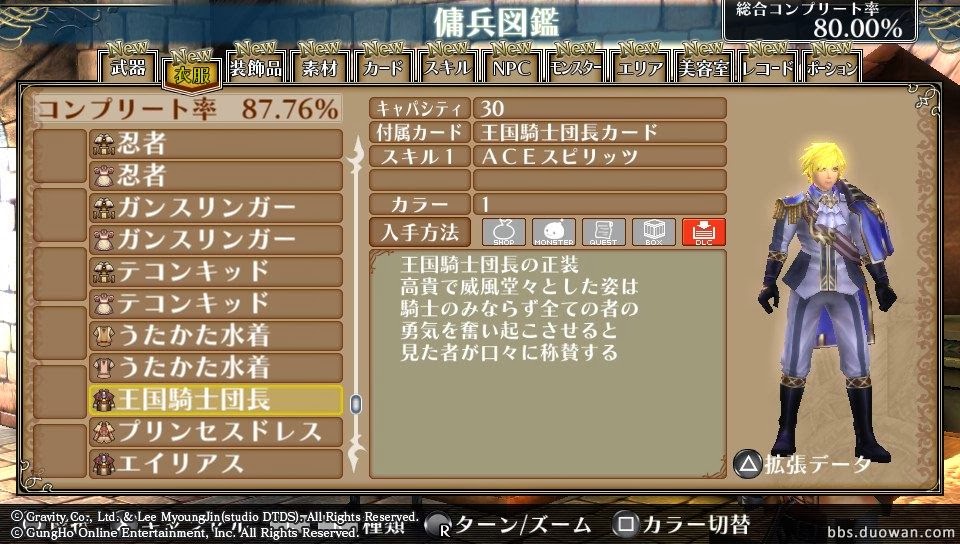 仙境傳說 奧德賽 ACE 男性服裝圖鑒